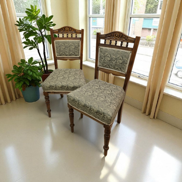 Antique Edwardian Bedroom Chairs c1910 / Set of 2 / New Upholstery / FREE DELIVERY