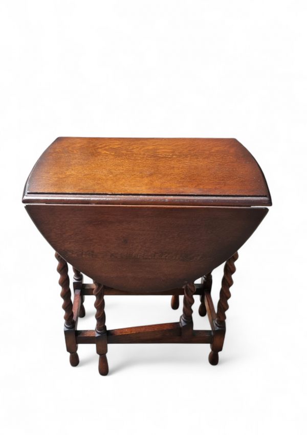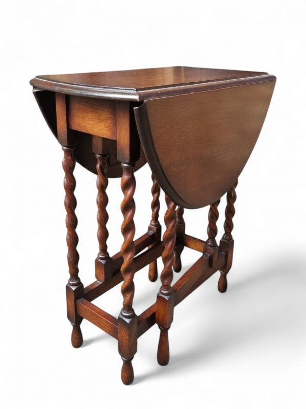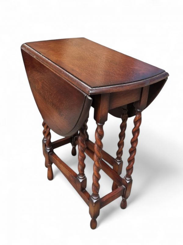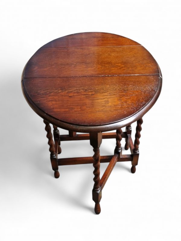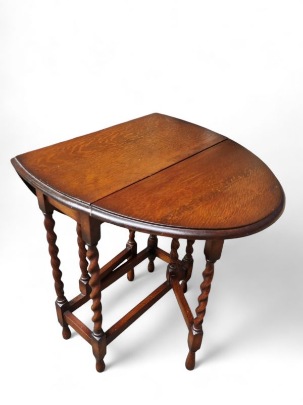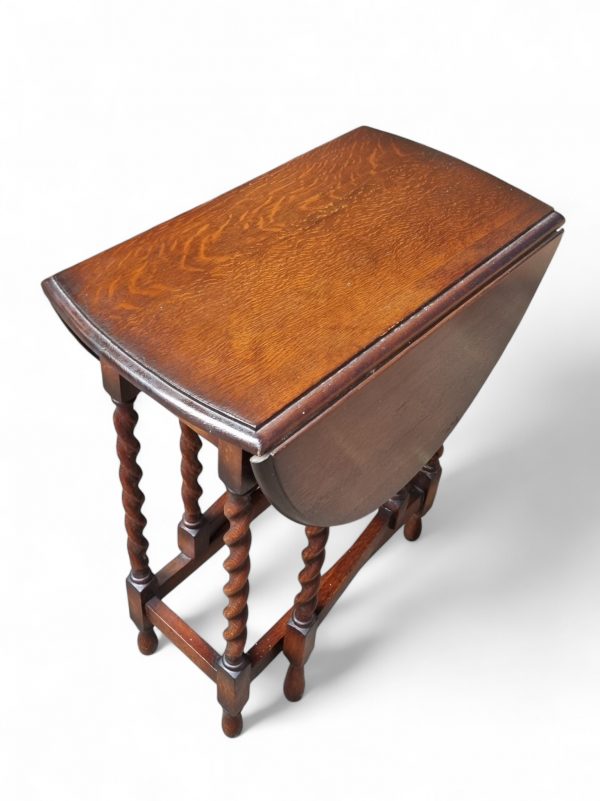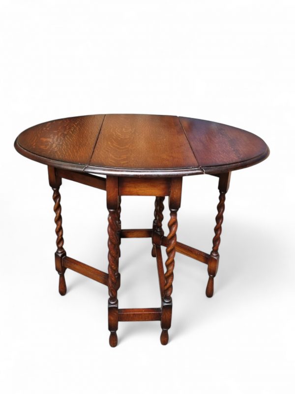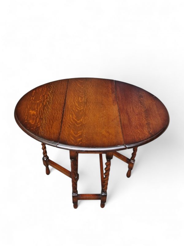 Antique English Drop Leaf Oak Table / Gateleg Barley Twist / 1910s-1930s / FREE DELIVERY