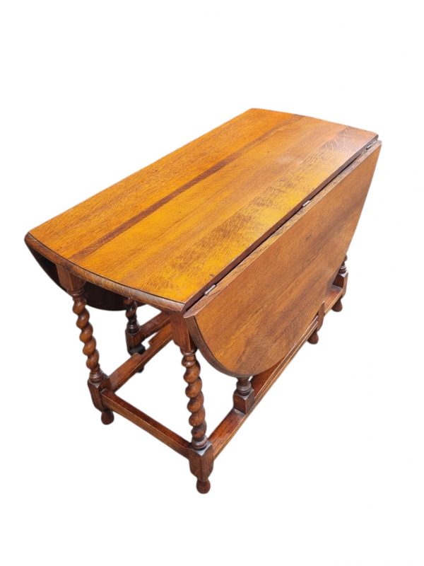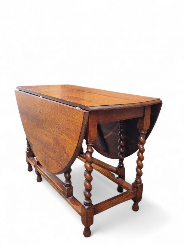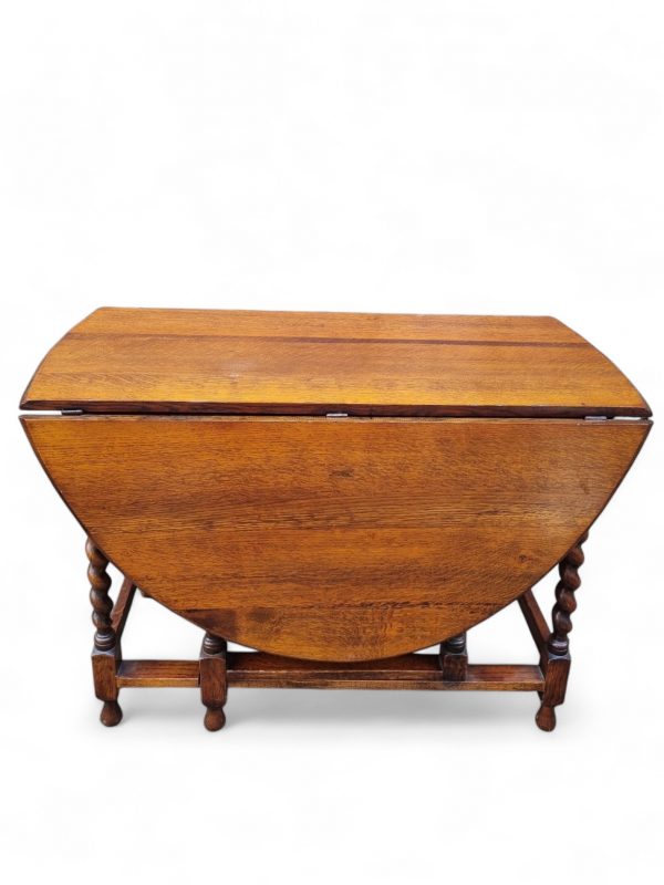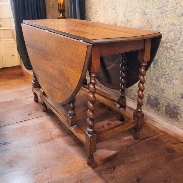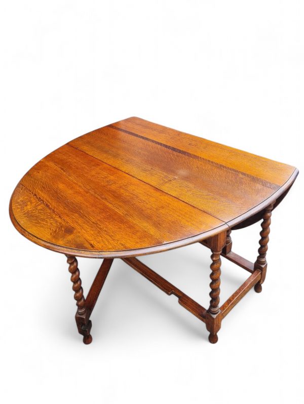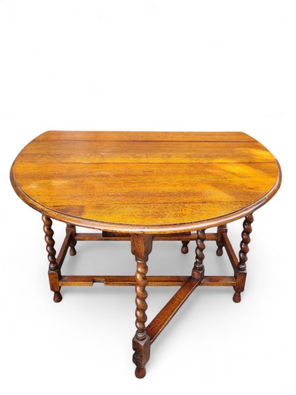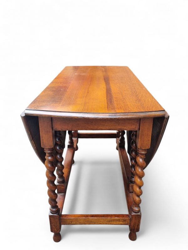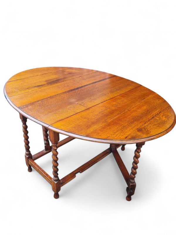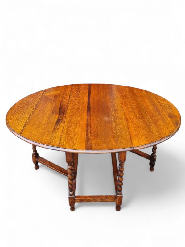 Beautiful Large antique English oak drop leaf Gateleg oval table Barley twist legs.