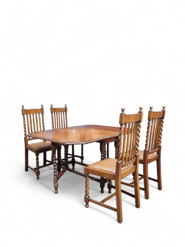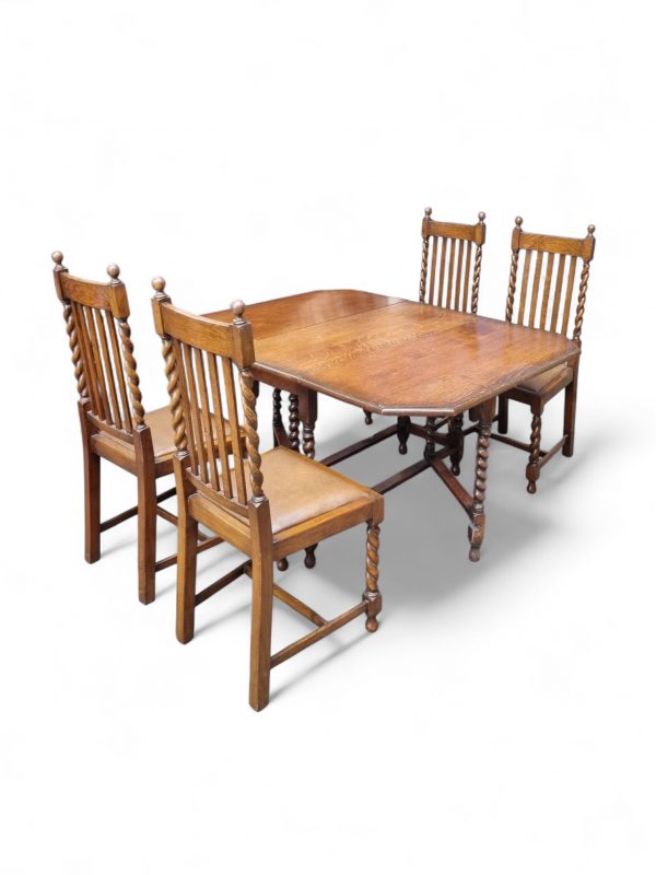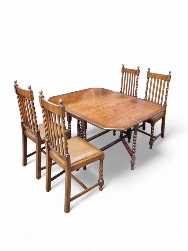 Antique English Oak Drop Leaf Table / Barley Twist / Dates From Around The 1880s / 6-8 Seats / FREE DELIVERY