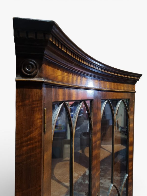The upper glazed section features Gothic inspired arched glazing bars, while the shaped cornice with dentil moulding adds classical refinement.