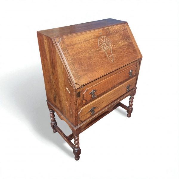 A fine oak bureau dating from the early 20th century, showcasing elegant design and practical form.