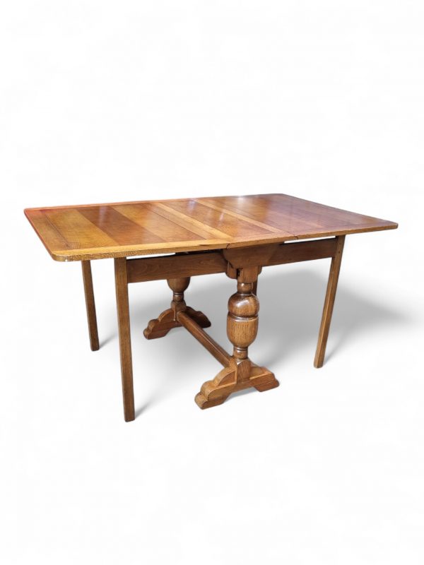The table features a rectangular top with drop leaves supported by gateleg action, allowing it to be extended when required or folded neatly when not in use.