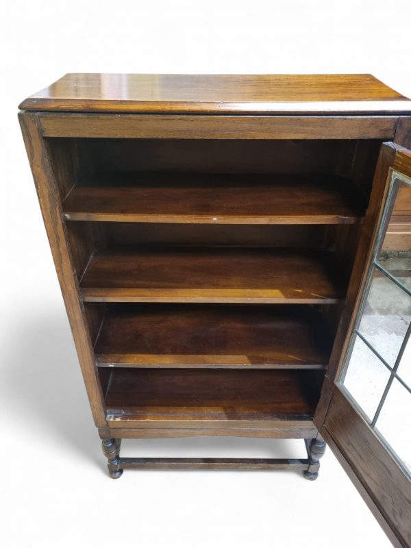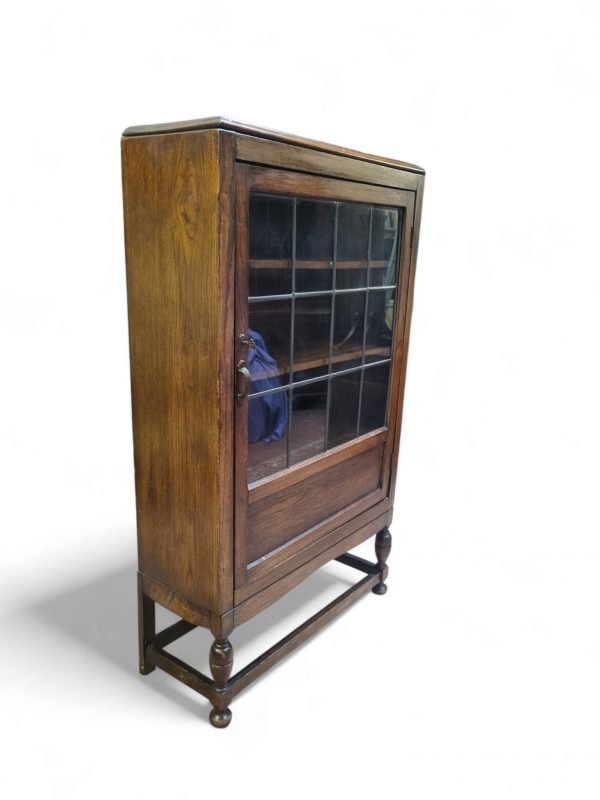 This elegant piece features a single glazed door with classic leaded glass panels, allowing a beautiful display of books, decorative objects, or collectables.