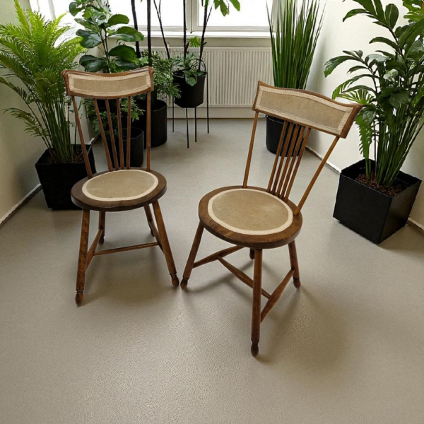 An early 20th century oak bedroom occasional set of two chairs.