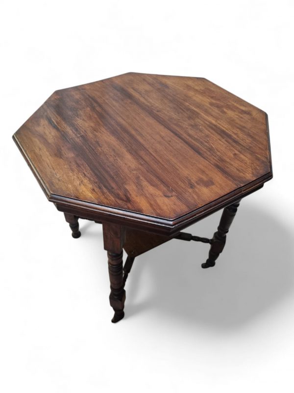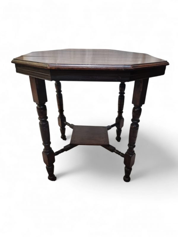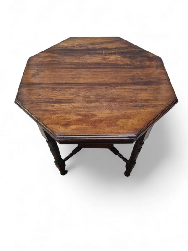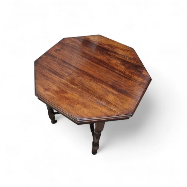 The octagonal top displays attractive grain and natural variation, while the turned legs add elegance and visual rhythm.
