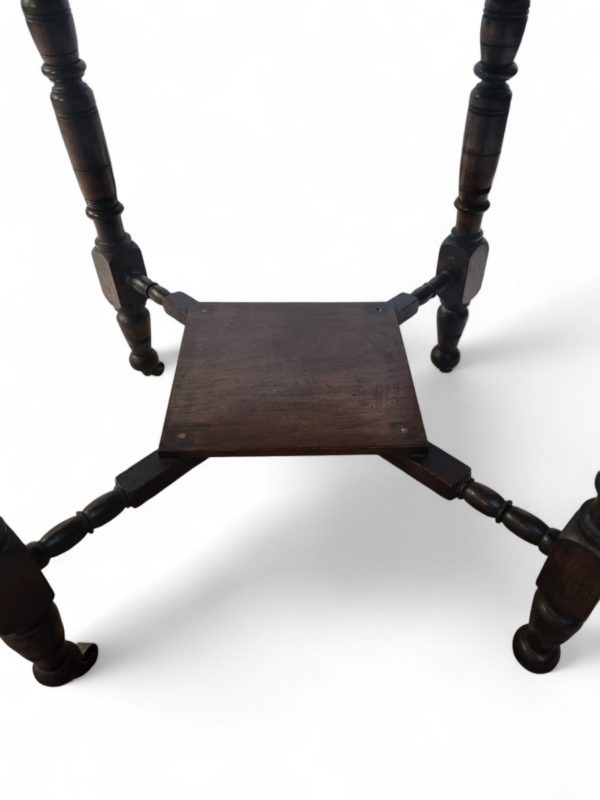 The table is solid and stable, making it suitable as an occasional table, lamp table or compact centre table in a traditional or eclectic interior.