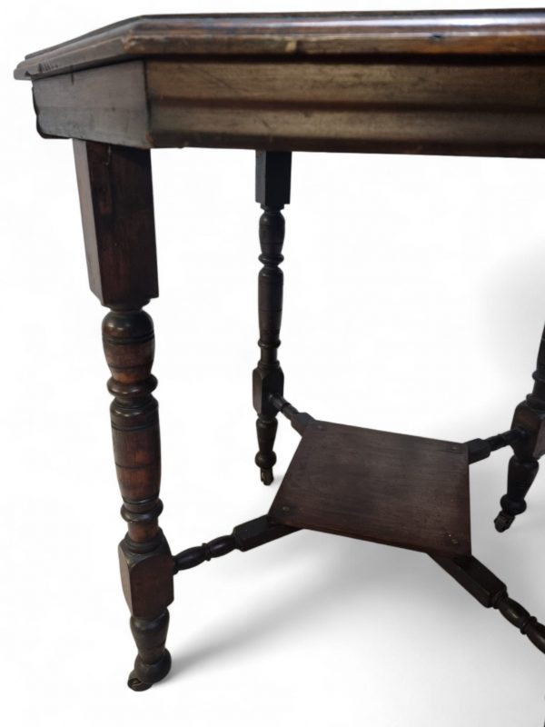 The warm tone of the timber and classic silhouette place this piece firmly within the late Victorian period.