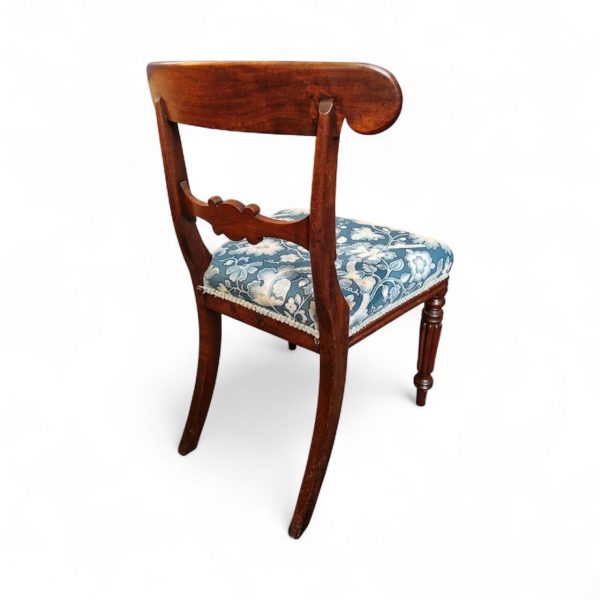 The chair stands on reeded and turned front legs and elegant sabre rear legs, showcasing the grace and balance characteristic of early 19th-century English furniture design.