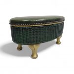 The piece is raised on turned legs united by stretchers, combining durability with period charm.
