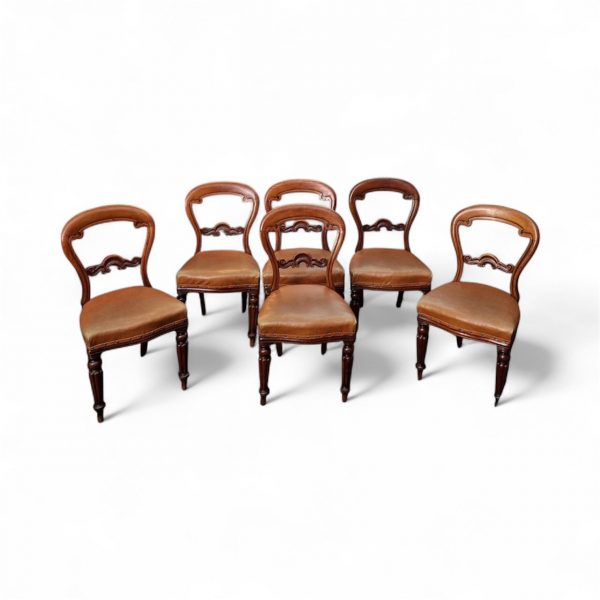 A fine set of six Victorian balloon back dining chairs, dating from around 1880, beautifully crafted from solid mahogany.