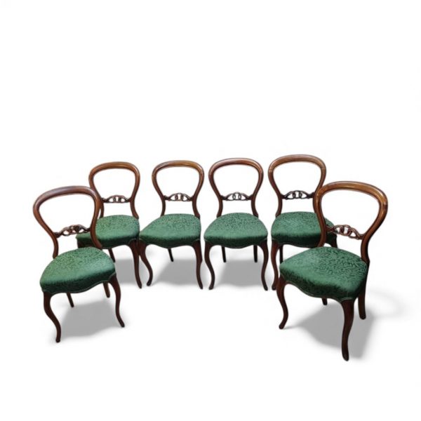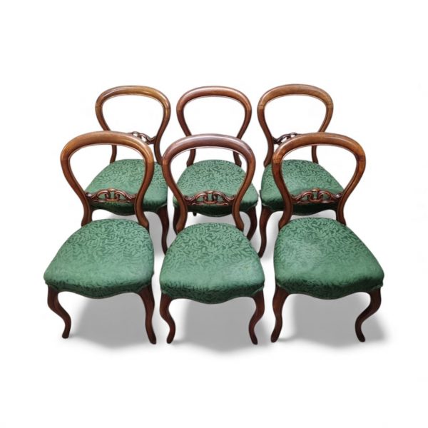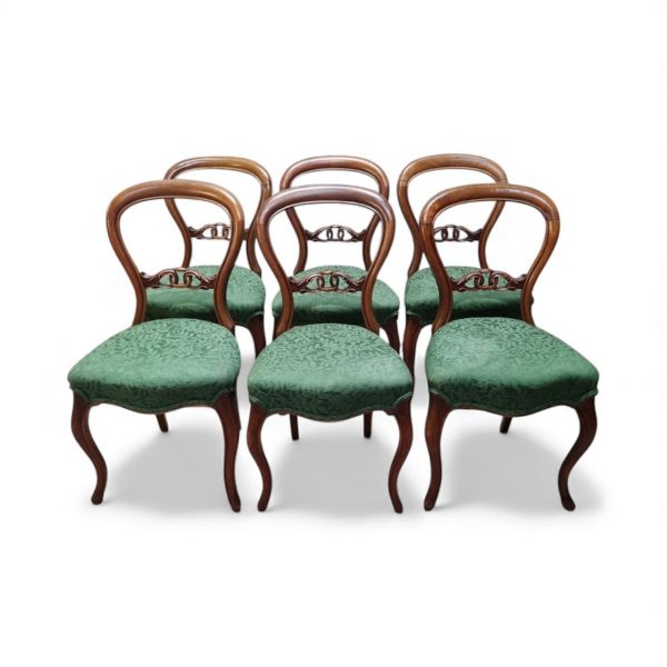 A beautiful and elegant set of six late 19th century dining chairs, crafted in the Victorian revival style.