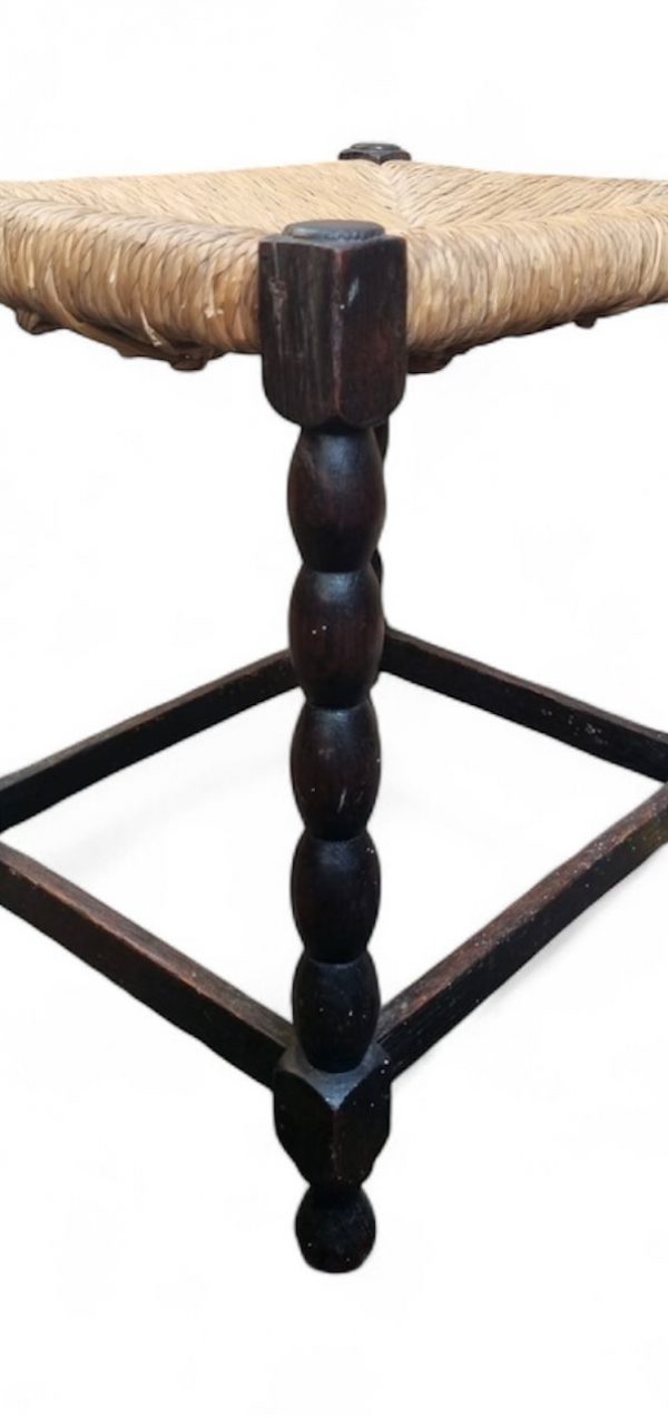 Vintage Bobbin Leg Rush Seat Stool / c.1950 / FREE DELIVERY