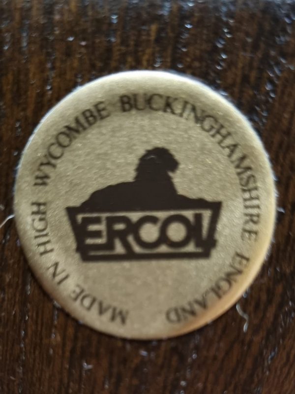 Made in High Wycombe, Buckinghamshire, this piece carries the original circular Ercol label, confirming its authenticity.