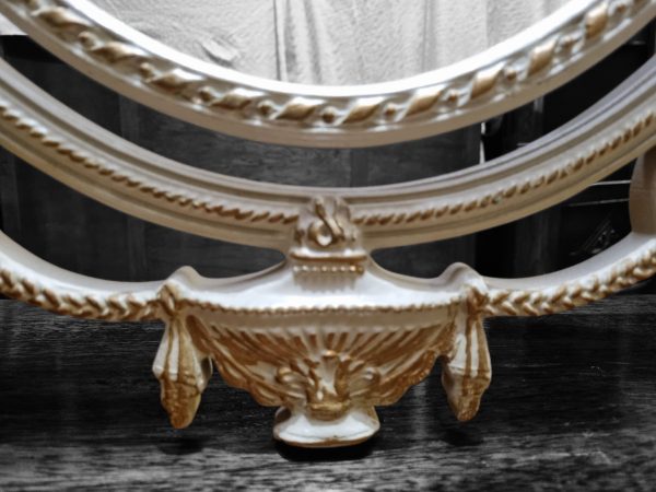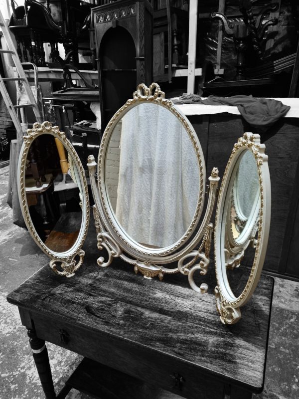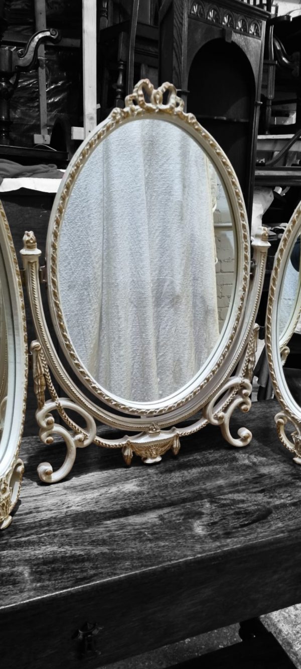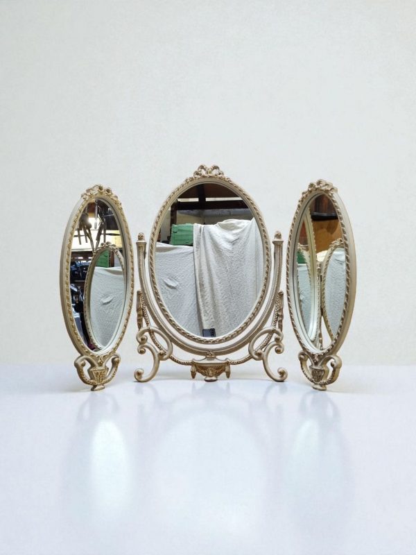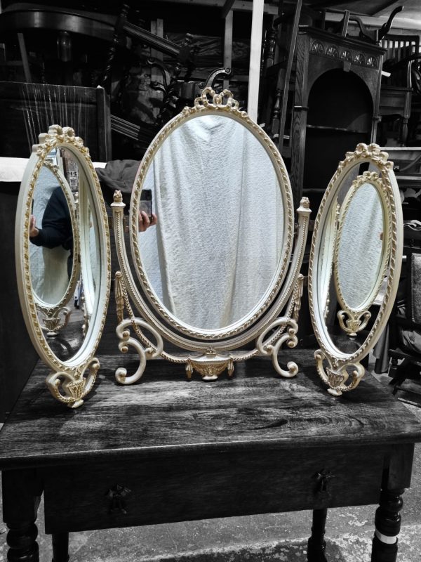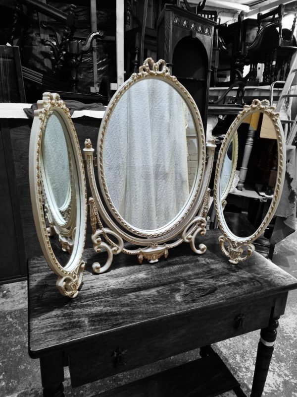 Vintage French Style Triple Dressing Table Mirror / Ivory & Gold / c1970 / FREE DELIVERY