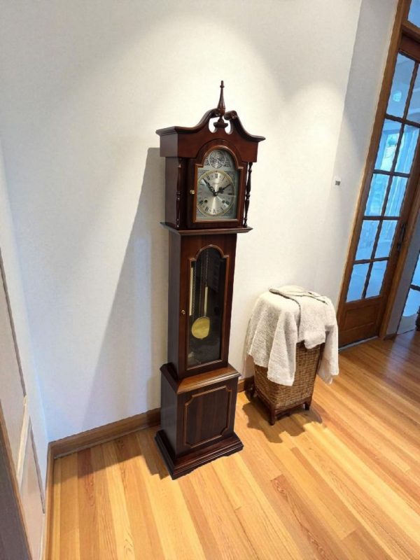 A beautiful vintage “Highlands” Tempus Fugit grandmother clock, made in England in the 1970s.