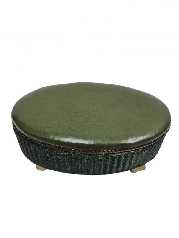 A charming vintage footstool in the Lloyd Loom Lusty style, dating from the mid-20th century.