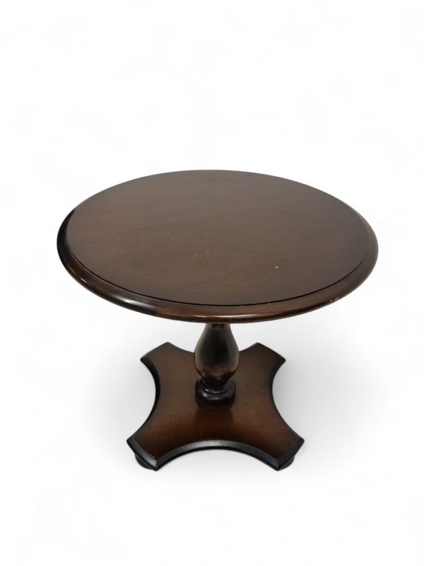 Compact in size, it is perfect for use as a coffee or side table, ideal for smaller interiors, reading corners, or as an occasional accent piece. The rich mahogany tone adds warmth and elegance, making it a versatile addition to both traditional and eclectic spaces.