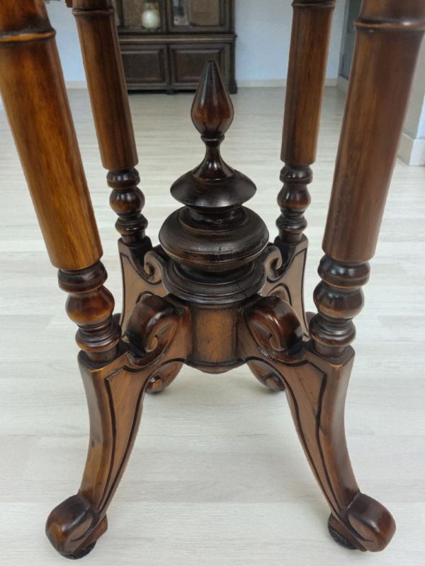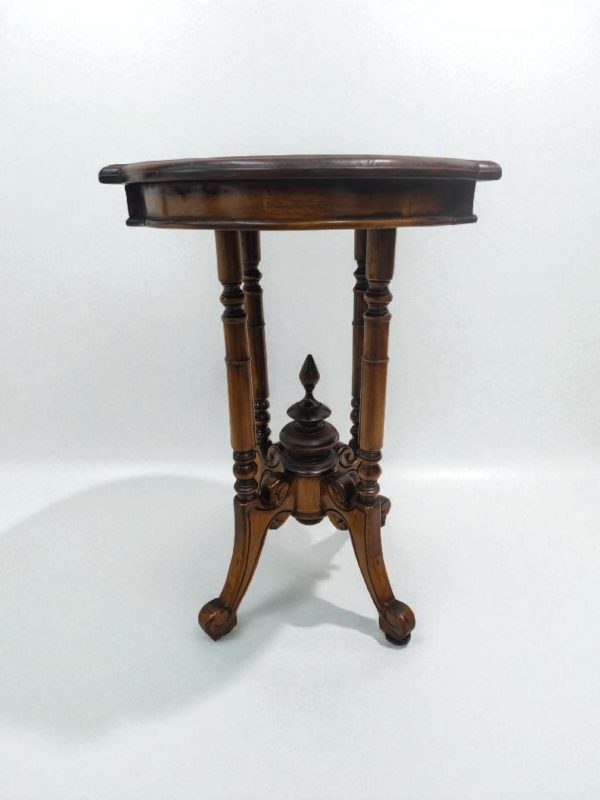 This piece combines timeless elegance with practicality, making it ideal as a side, lamp, or occasional table. Its warm tone and intricate turned legs bring character to both classic and contemporary interiors.