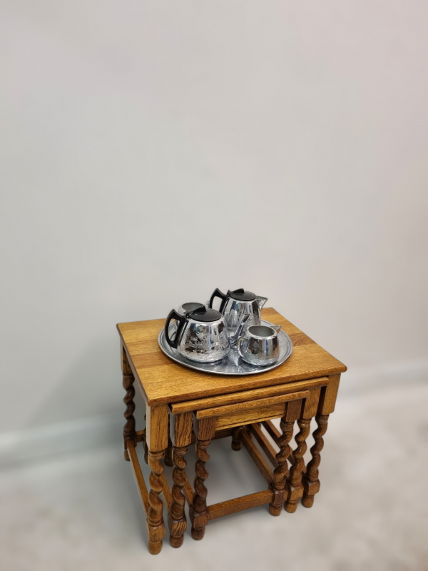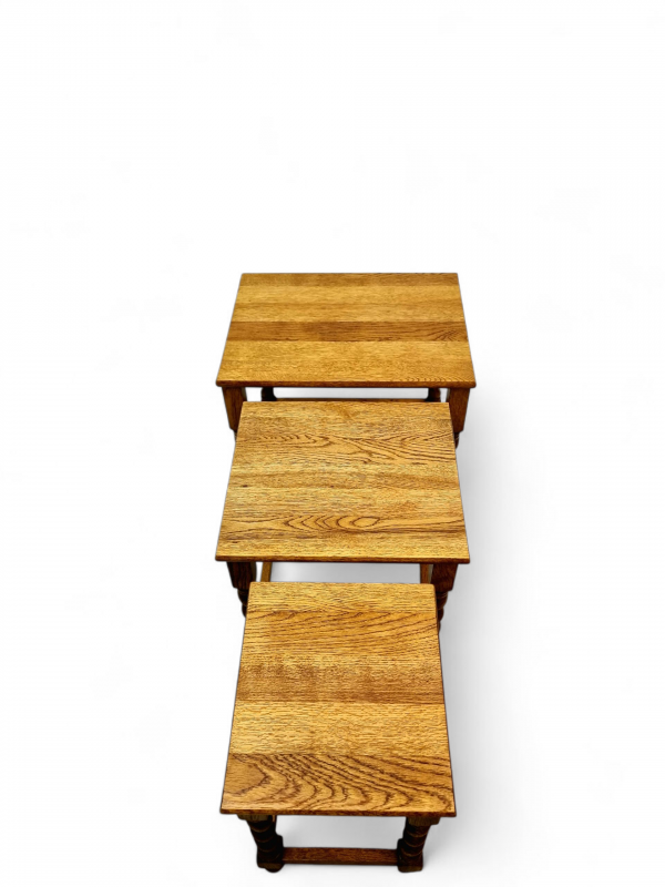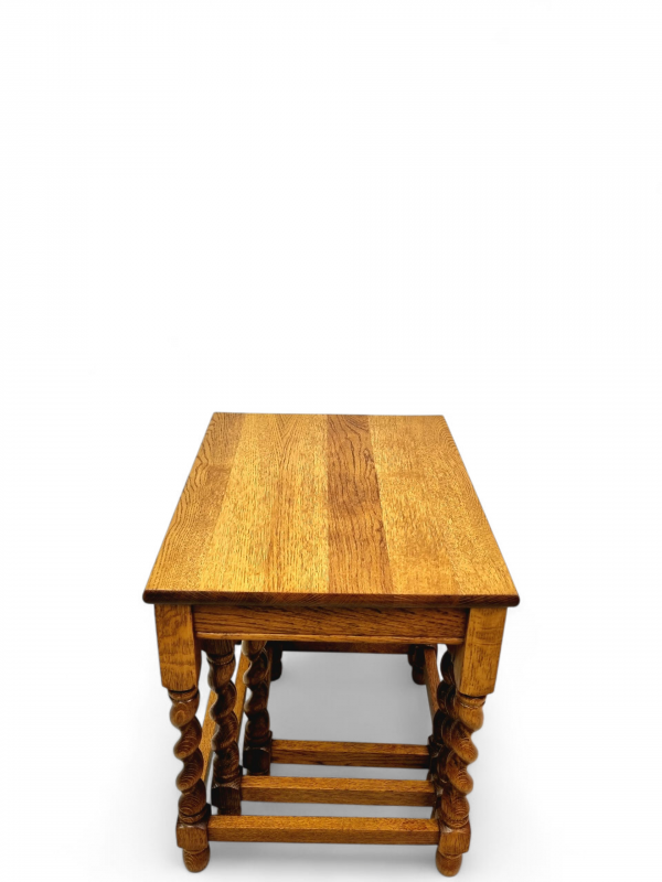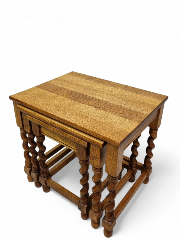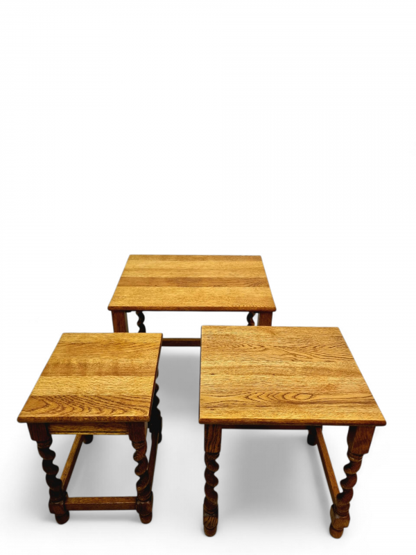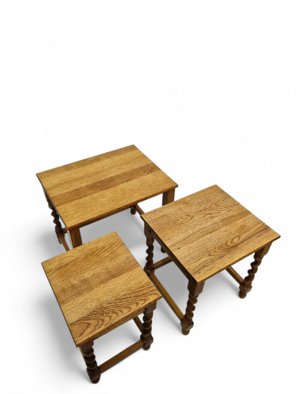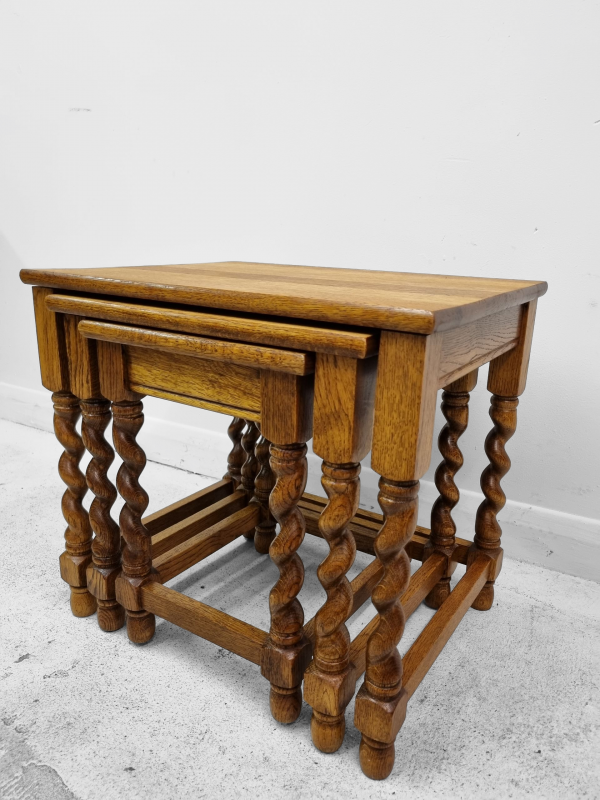Vintage Oak Nest Of 3 Tables / Twisted Legs / Light Oak / c1960 / FREE DELIVERY
