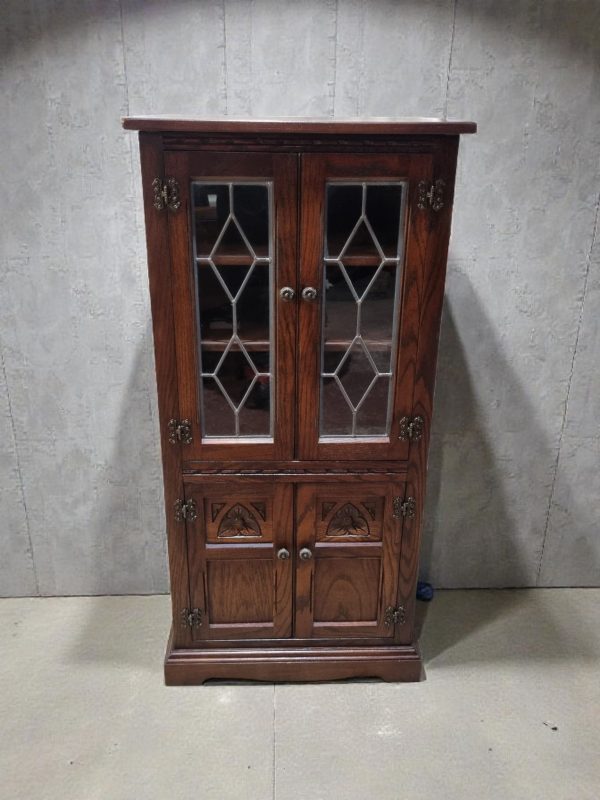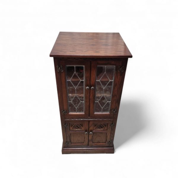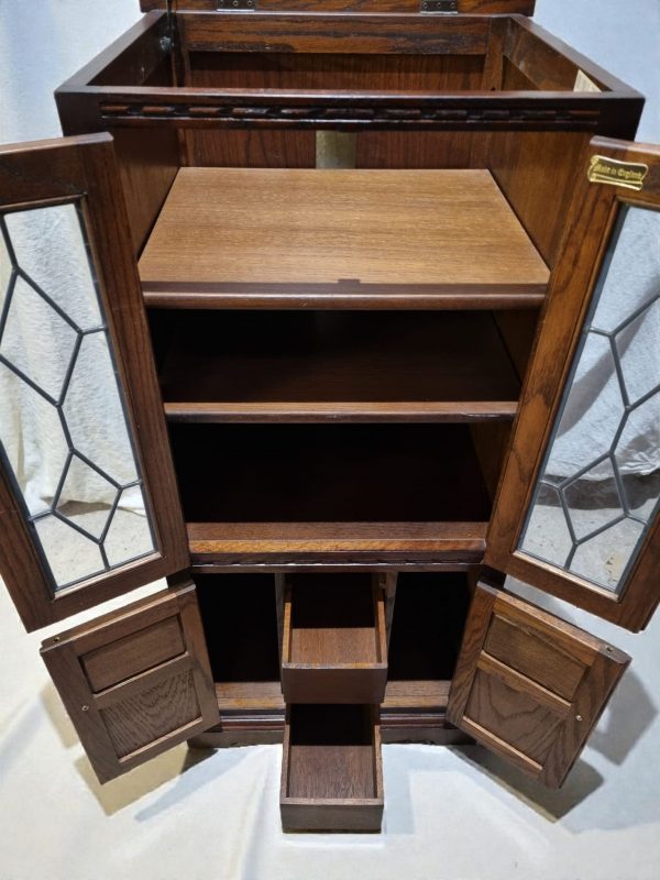 Vintage Old Charm Wood Bros Hi-Fi Cabinet / c.1970 / Tudor Brown / Leaded Glass / FREE DELIVERY