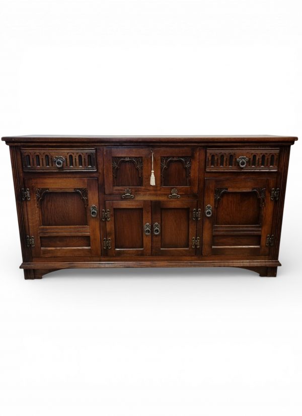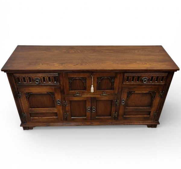 Vintage Old Charm Wood Bros Lancaster Sideboard / Drinks Cabinet / Tudor Brown Oak / 1960 / FREE DELIVERY
