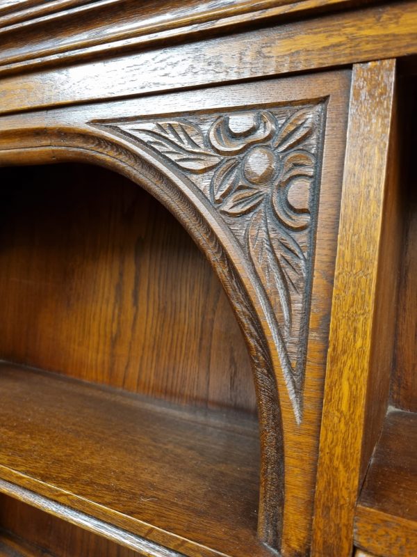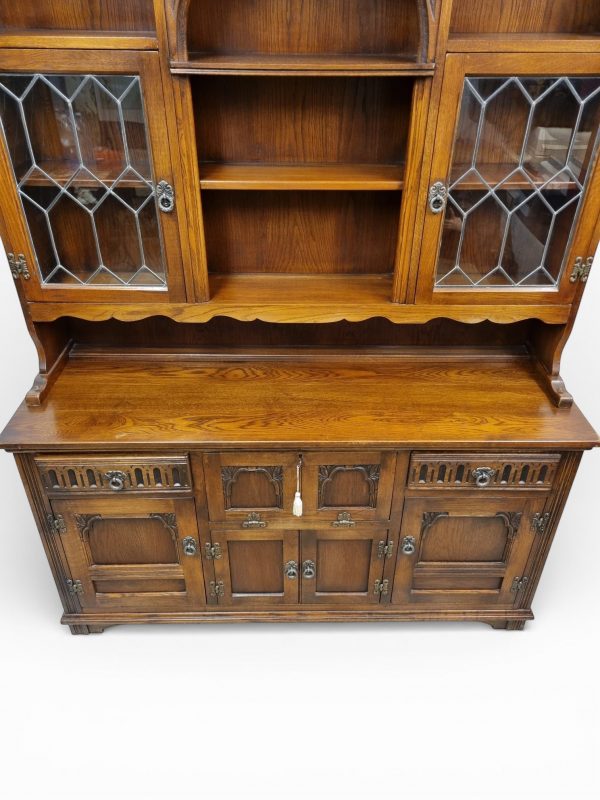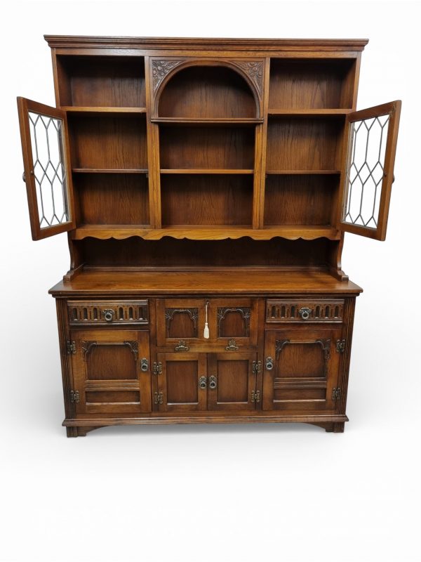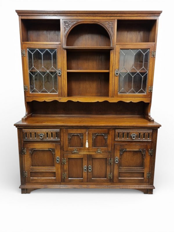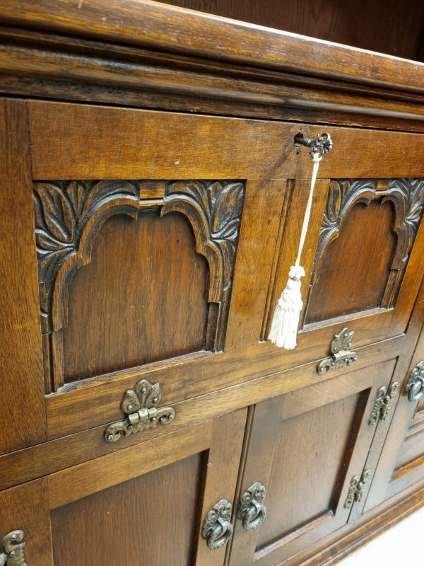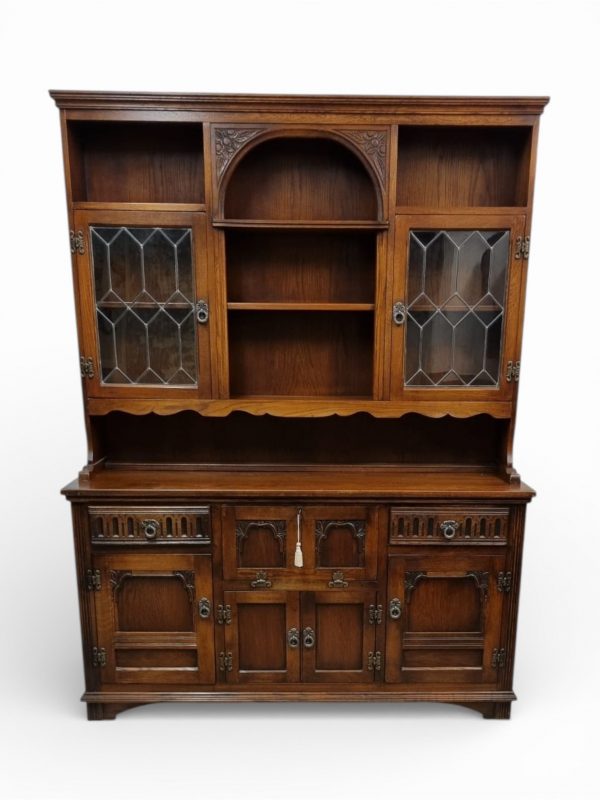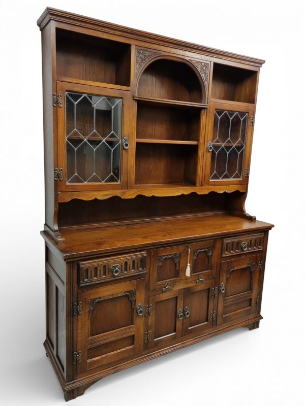 Crafted in solid oak and finished in the rich Tudor Brown tone, this impressive two part dresser embodies the classic Old Charm Gothic styling.