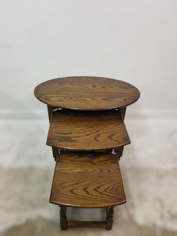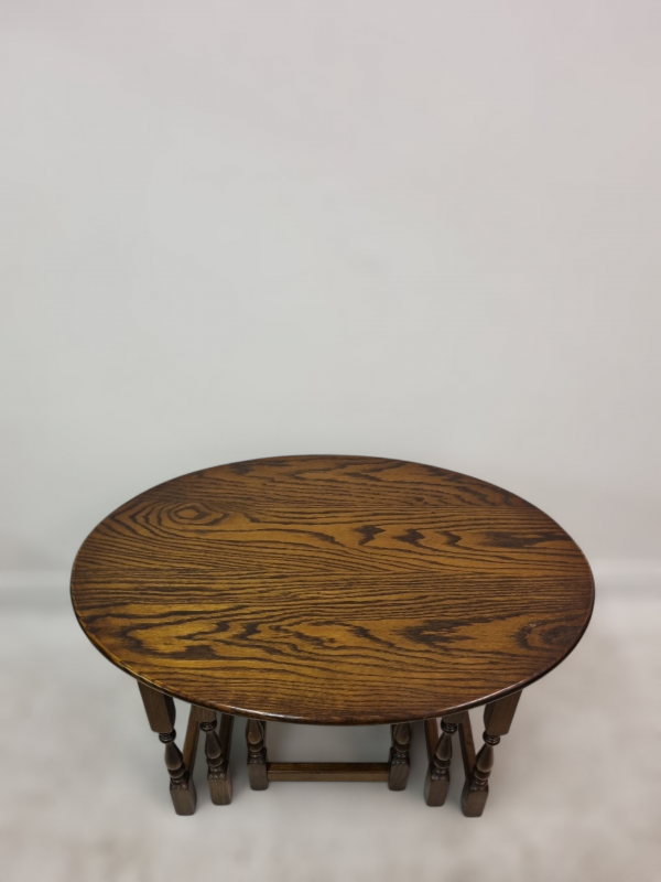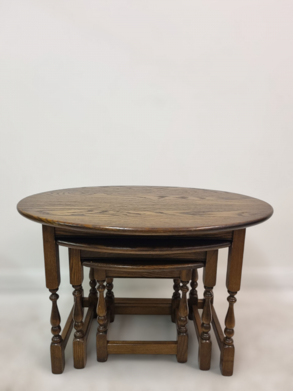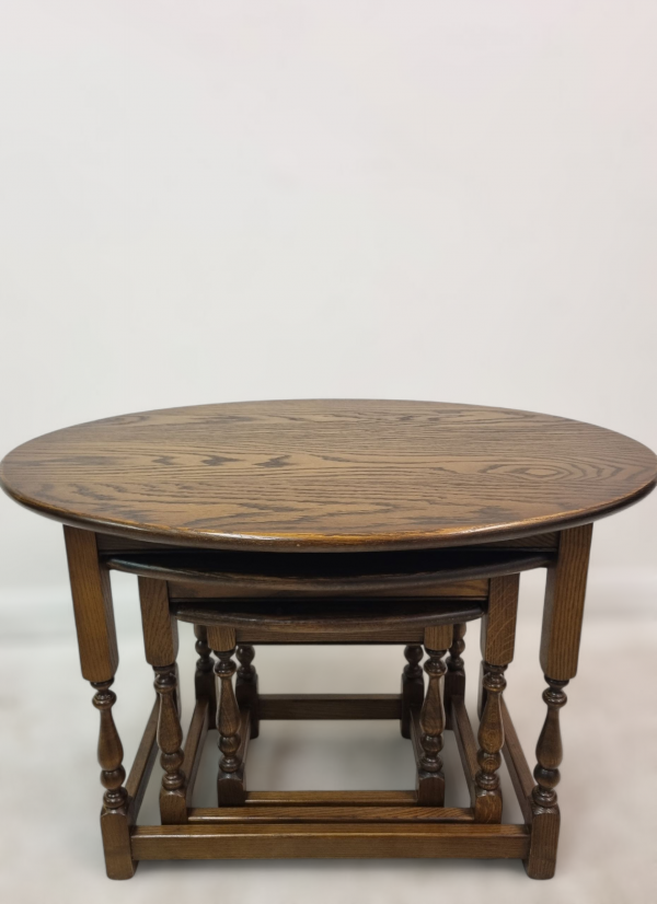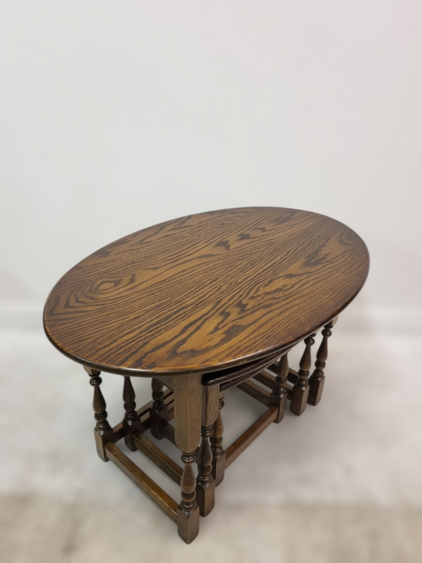Vintage Old Charm Wood Bros / Oval Oak Nest of 3 Tables / c1970 / FREE DELIVERY