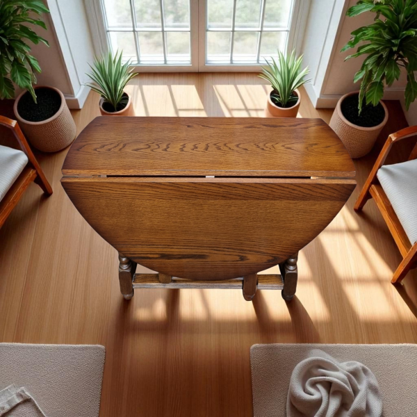 Vintage Old Charm Wood Brothers Oak Gate Leg Drop Leaf Dining Table / Tudor Brown / c1970 / FREE DELIVERY