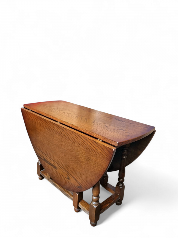 Lovely Vintage Old Charm Gateleg Dining Table in Traditional Tudor Brown from 1970s.