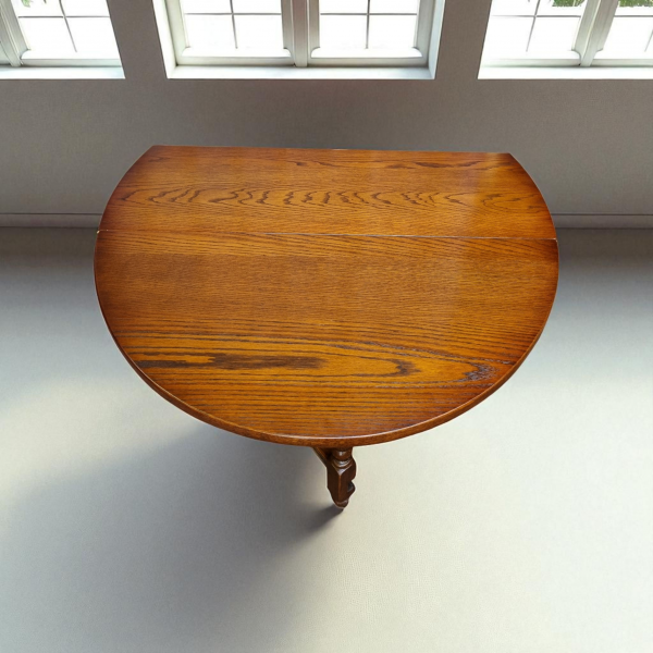Lovely Vintage Old Charm Gateleg Dining Table in Traditional Tudor Brown from 1970s. The table seats up to 6 places with the leaves raised. These table are very often used with just one leaf up in kitchens and are perfect for 2 to 3 people to sit at. Always in high demand hard-to-find drop leaf Dining table large size. The table is in very good condition with small marks on one leaf side. It is the famous ‘wood brothers’ ‘old charm’ furniture company, of London Road, England. It has attractive oak-wood graining through-out and would sit nicely with other matching ‘wood brothers’ ‘old charm’ items of oak furniture. Age related wear which is expected but this all adds to its character. These excellent piece is a beautiful example and one not to be missed Would look amazing in the right location! It would make a lovely gift or addition to your collection. Approximate measurements Height 74cm Width 114cm Extended length 152cm Depth 51cm Floor to Knee height 71cm Length with 1 leaf raised 101cm Fantastic decoration for home or can be used as a prop or display. A very eye-catching collector’s item. The item is free from damage.