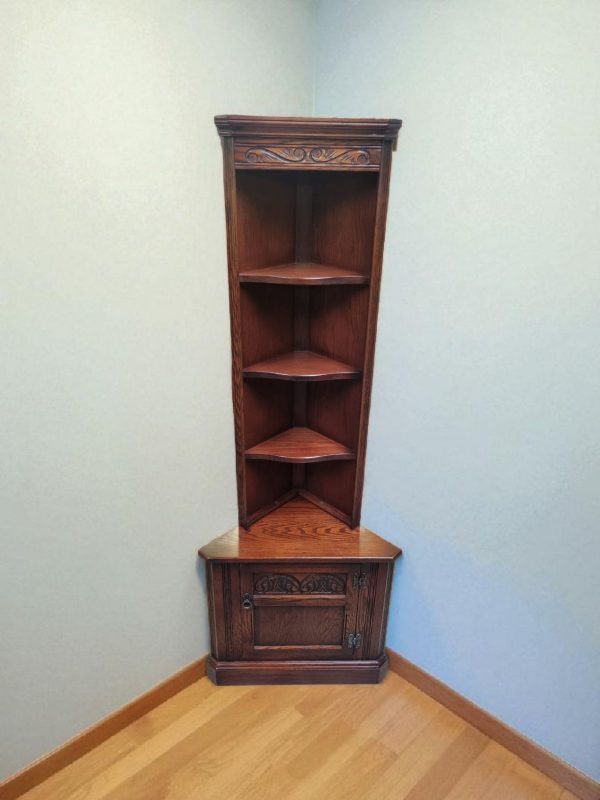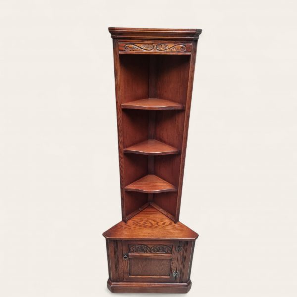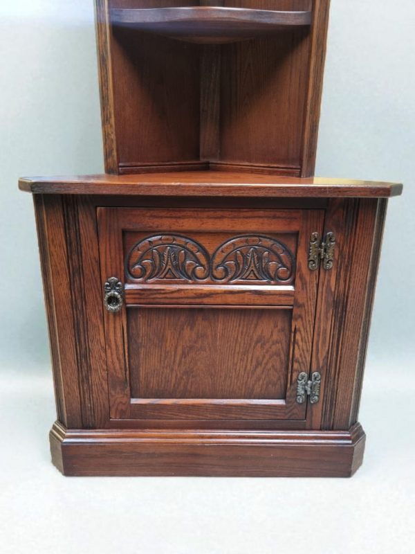 Vintage Old Charm Wood Brothers Tall Corner Cabinet / Tudor Brown / c.1970 / FREE DELIVERY