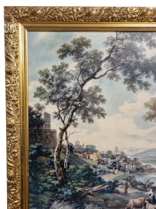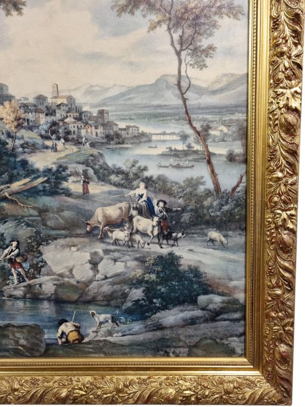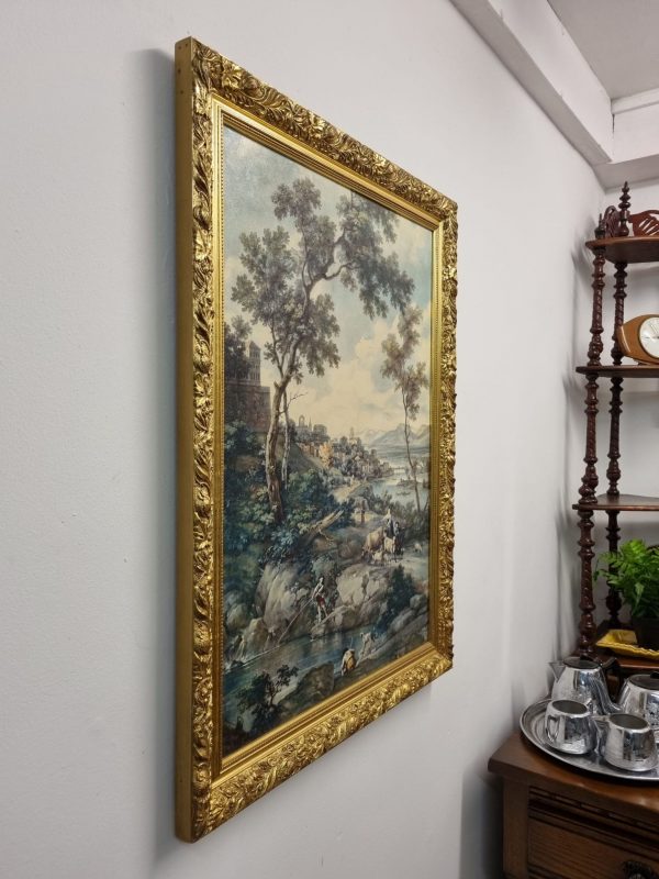 Printed on canvas with a raised textured finish to mimic brushstrokes, set in its original ornate gilt frame.