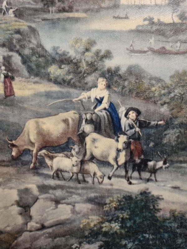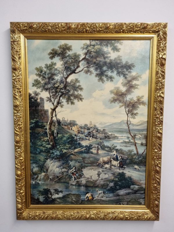 Beautiful vintage reproduction print on canvas, titled Serene Pool, after the Italian painter Giovanni Battista Cignaroli (1706–1770). Produced by C.P. Productions Ltd., Northern Ireland, circa 1950s–1960s.